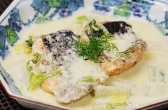 市場の新鮮秋鮭を使った「秋鮭と白菜のクリーム煮」