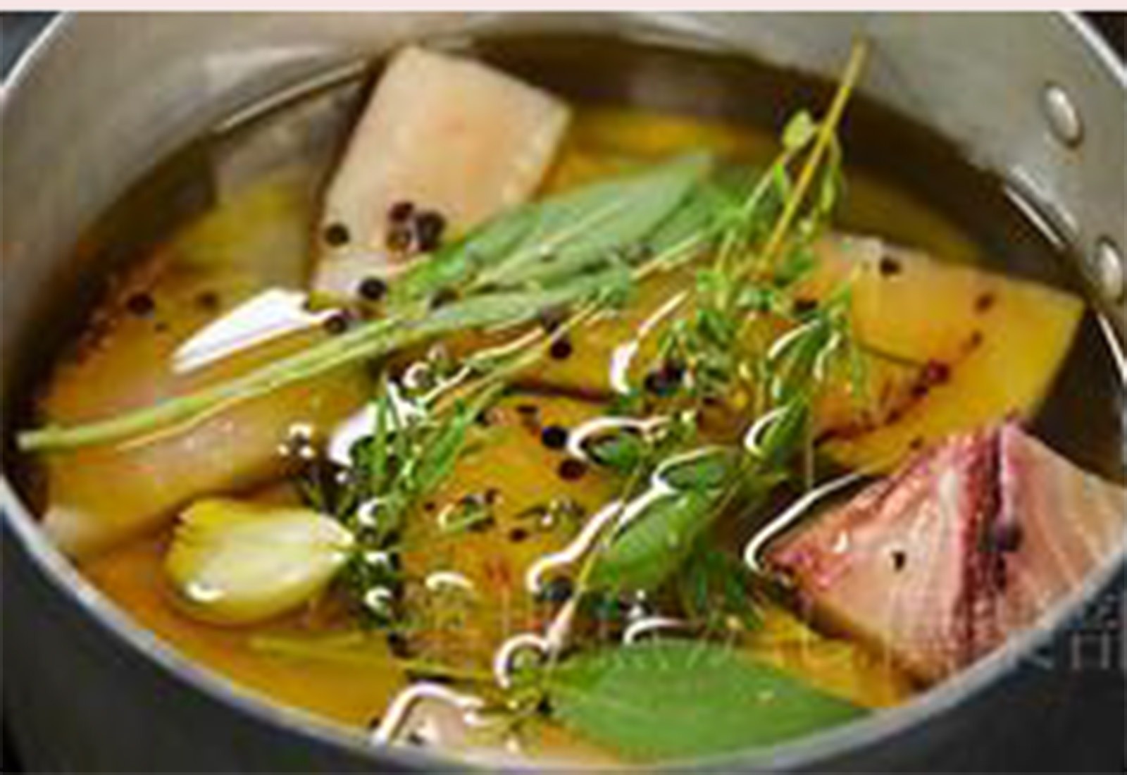 豊洲市場のカジキマグロと公園内で育てているハーブを使い、