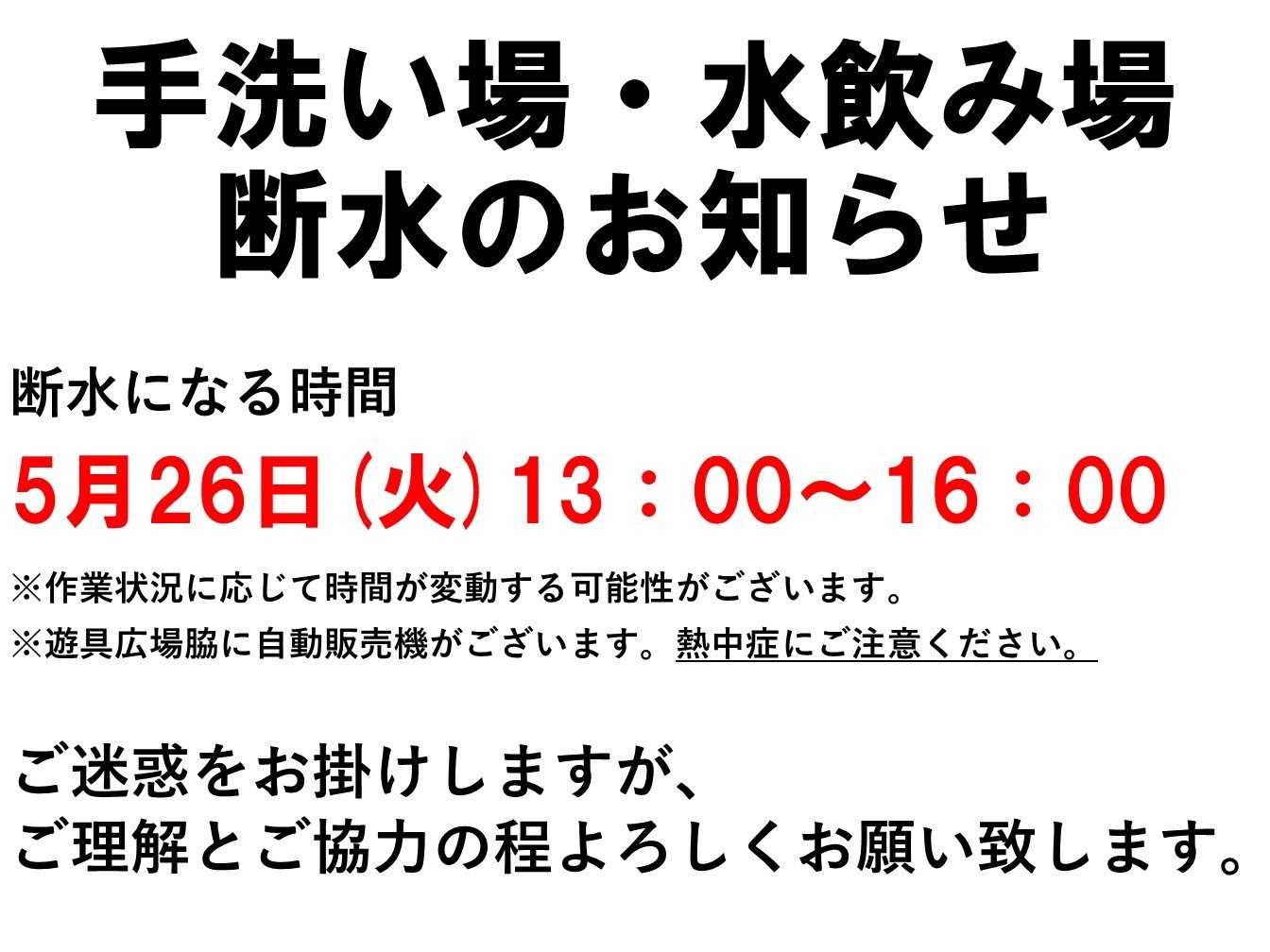 豊洲公園 手洗い場・水飲み場 断水 作業完了のお知らせ