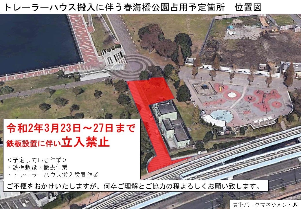 豊洲公園 大型車両搬入に伴う立入禁止のご案内
